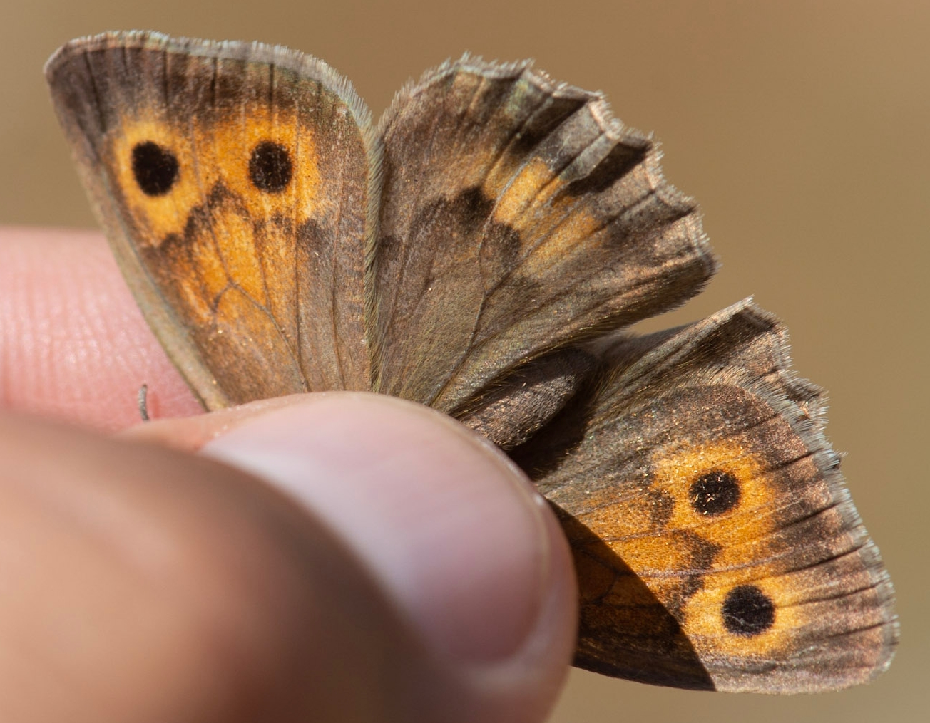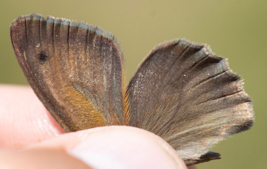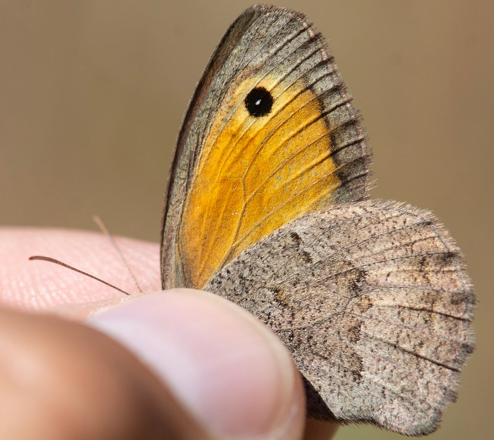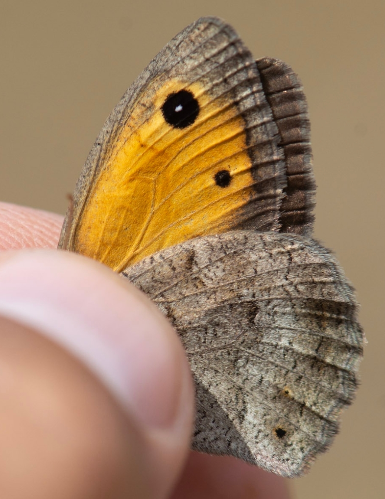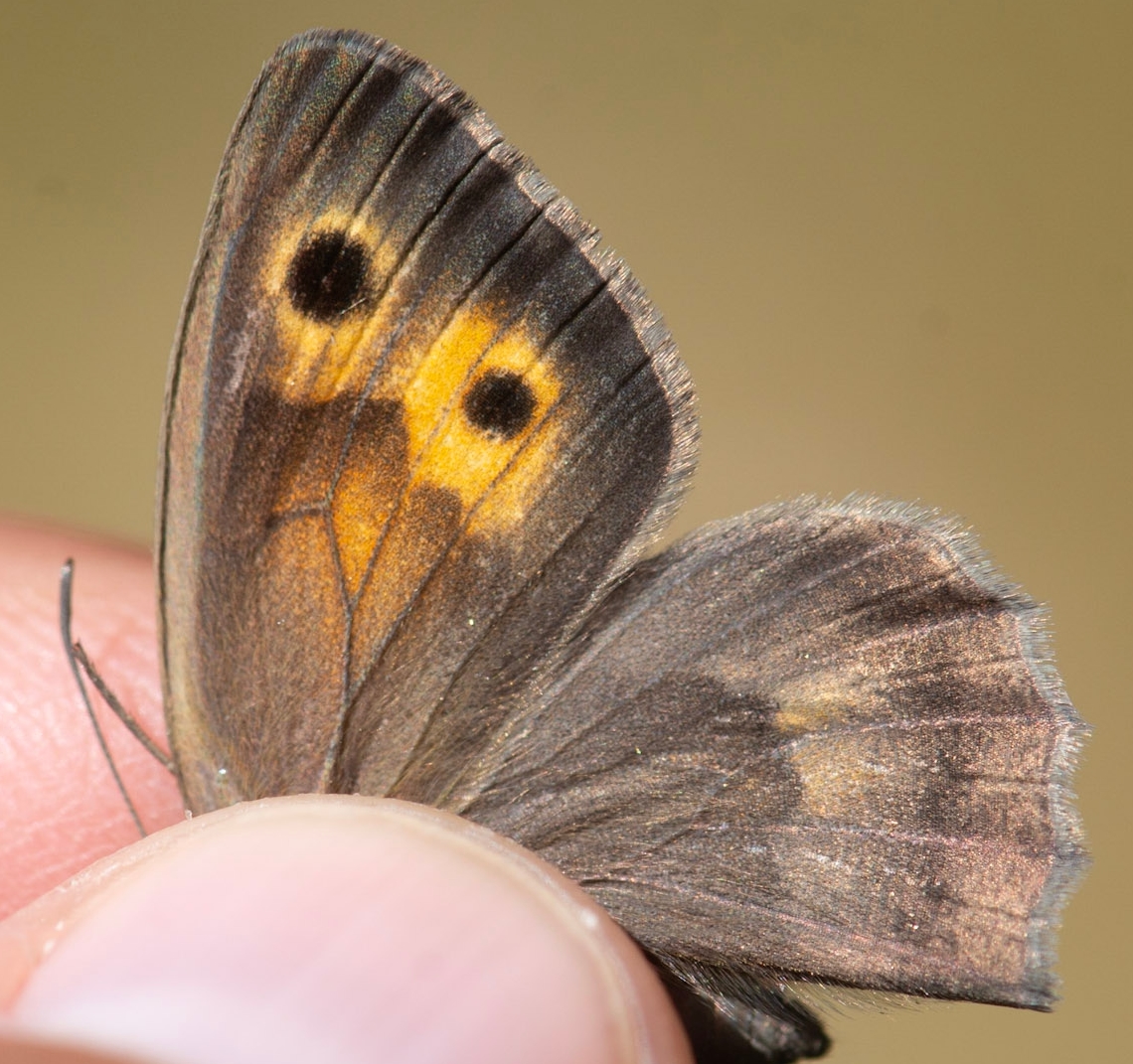 SOURCE : Papillons de jour et Libellules méconnus ou rares en Occitanie - État des connaissances, conseils pour la détermination et les prospections - édition n°1 - Mai 2024 (monographie Ghislain RIOU) Recommandations pour la détermination de H. lycaon et H. lupina : L’identification des Hyponephele est difficile (ils volent ensemble au même moment sur les mêmes stations des Grands Causses). Elle passe quasiment obligatoirement par la capture des individus afin d’observer le dessus des ailes. Les deux Hyponephele ressemble beaucoup à Maniola jurtina. Dans la majorité des cas, M. jurtina ne vole pas dans les pelouses chaudes et rocailleuses où vivent ces deux espèces, mais des individus erratiques sont toujours possibles, notamment sur les marges de ces habitats. M. jurtina se différencie par le dessous des ailes postérieures avec une couleur de fond jaune-orangé, un trait central marqué avec une bande claire contrastée. Chez les Hyponephele, le fond du dessous des ailes post. est assez uniformément grisâtre et il n’y a pas de trait marqué et de nette bande claire. Chez les femelles d’Hyponephele, il y a un 2ème ocelle (souvent aveugle) sur le dessous de l’aile antérieure alors qu’il n’y a qu’un ocelle chez M. jurtina. Un autre critère pouvant être utile est la délimitation entre la bande marginale brune et la zone orange sur le dessous de l’aile antérieure : il y a souvent une ligne foncée et la limite est nette chez les Hyponephele, estompée chez M. jurtina. Le meilleur critère pour l’identification des trois espèces est la bande androconiale visible sur le dessus des ailes antérieures des mâles. Chez M. jurtina la bande est large et diffuse, chez H. lycaon elle est marquée, étroite et longue et chez H. lupina elle est très marquée et large. Sur les individus usés, ce critère peut être difficile à apprécier. Dans ce cas, il est aussi possible de contrôler les genitalia en main (même méthode que pour les Mélitées) en regardant attentivement la forme et la taille de l’uncus et des valves. Chez H. lycaon, l’uncus est fin et allongé alors que chez H. lupina il est court et robuste. Les valves sont très larges chez Maniola jurtina. Elles sont très minces et droites chez H. lycaon, un peu plus robustes et courbées vers le haut en partie distale chez H. lupina. Quelques autres critères existent et peuvent aider à l’identification, même s’ils ne sont pas discriminants : - Le bord de l’aile postérieure est plus festonné chez H. lupina que chez H. lycaon (surtout visible chez les femelles) ; - Chez les femelles, l’aire jaune-orange sur le dessus des ailes antérieures est souvent plus étendue chez H. lycaon que chez H. lupina (la bande jaune-orange est habituellement séparée par une bande brune entre les deux ocelles chez ce dernier) ; - H. lupina est habituellement plus grand que H. lycaon (il a une taille proche de M. jurtina). Pour la saisie dans les bases de données, nous recommandons fortement de joindre des photographies des individus montrant le dessus des ailes. Si ce n’est pas le cas, mais que l’individu a été capturé et que les critères ont été dument observés, il est nécessaire de le préciser en commentaire.