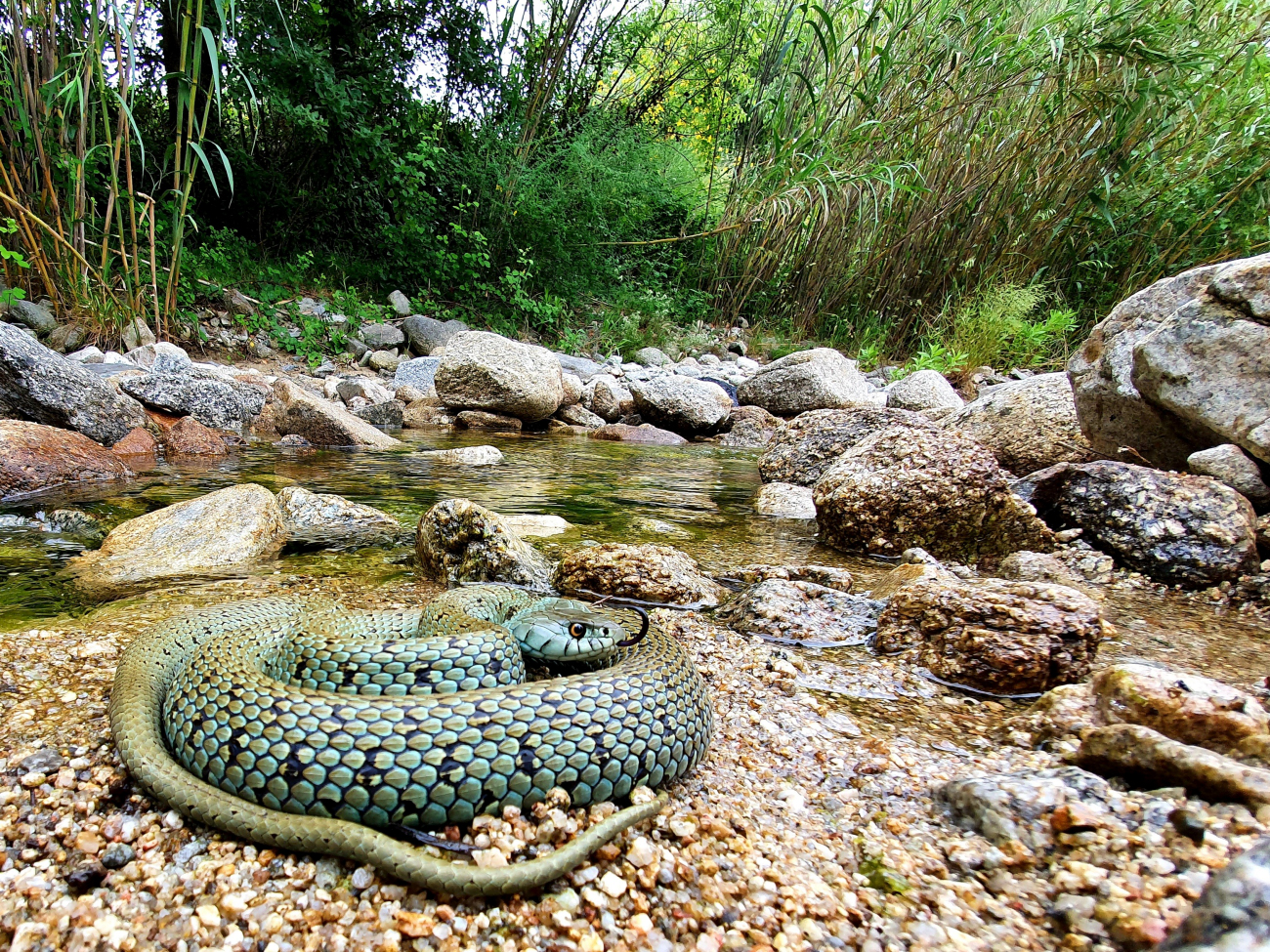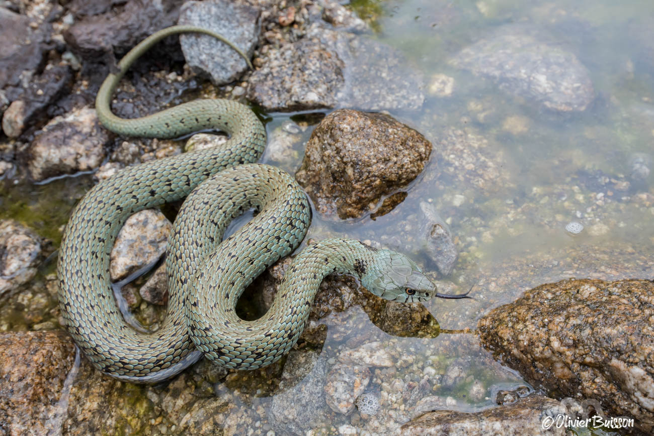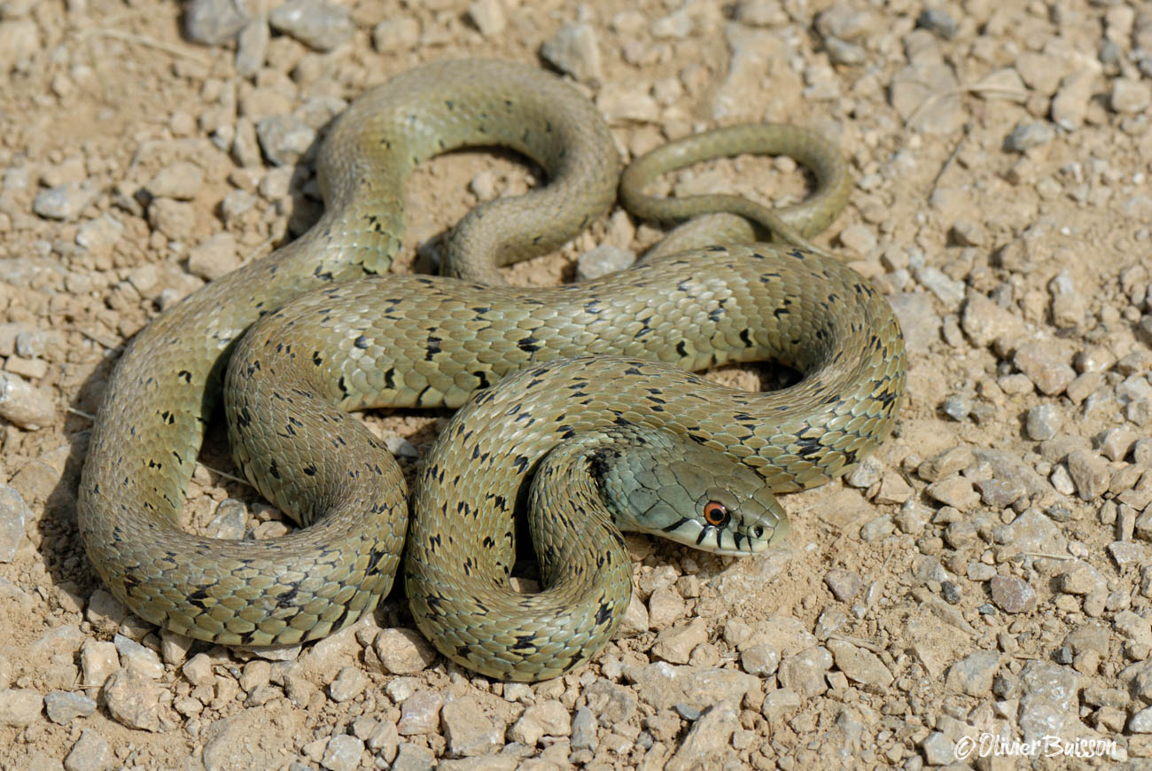 Signalons qu'il existe entre l'Ariège et l'Aude une zone de contact entre Natrix astreptophora et N. helvetica, où s'observent localement des individus hybrides (génétiquement attestés) qu'il est impossible d'attribuer à l'une ou l'autre espèce sur la simple base de critères externes.Attention aux confusions avec les jeunes de la Couleuvre verte-et-jaune (Hierophis viridiflavus) et de la Couleuvre d'Esculape (Zamenis longissimus), qui présentent également un motif en collier à l'arrière de la tête et passent donc très souvent pour de jeunes Natrix helvetica ou Natrix astreptophora.
